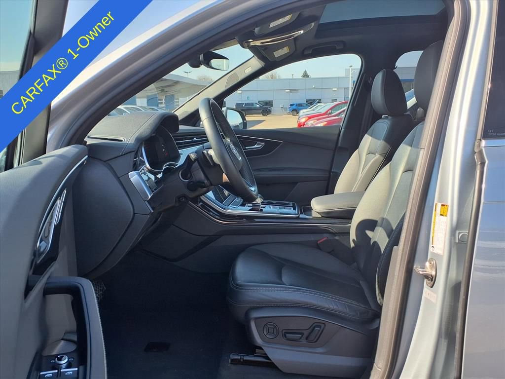 With seating for seven in its stunning leather-trimmed interior, our Q7 Premium Plus is ready to take you on an epic adventure. You'll enjoy being pampered by amenities such as heated front seats, a heated multi-function steering wheel, keyless entry/ignition, an inductive charging pad, and tri-zone automatic climate control. Audi also includes an intuitive full-color instrument cluster/infotainment system to keep you seamlessly connected and entertained with navigation, Bluetooth®, Android Auto®, wireless Apple CarPlay®, and Bang & Olufsen 3D surround sound.
